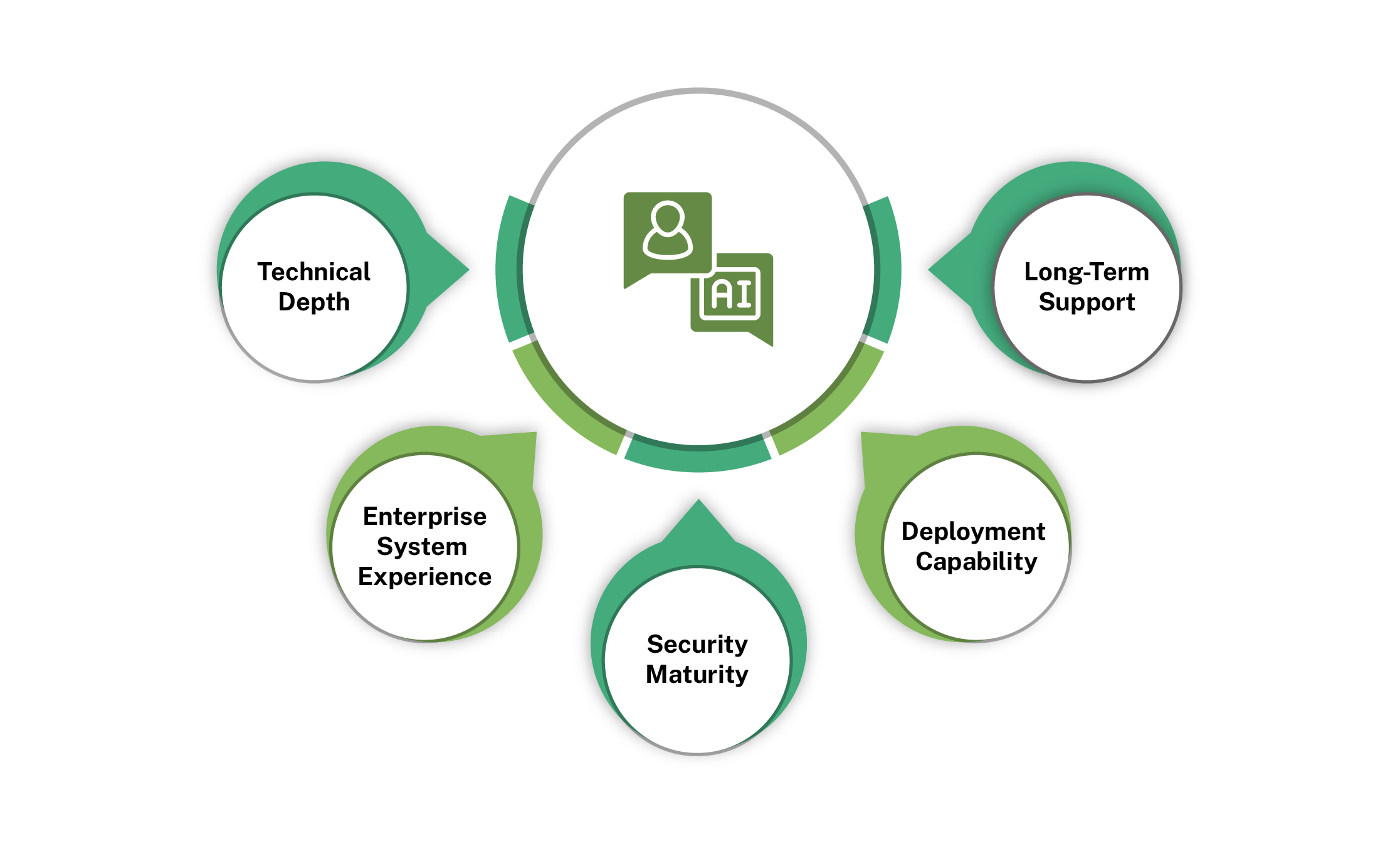 Choosing among AI integration companies requires more than reviewing capabilities on paper. The evaluation should focus on technical depth, enterprise system experience, governance maturity, and the ability to support long-term deployment.