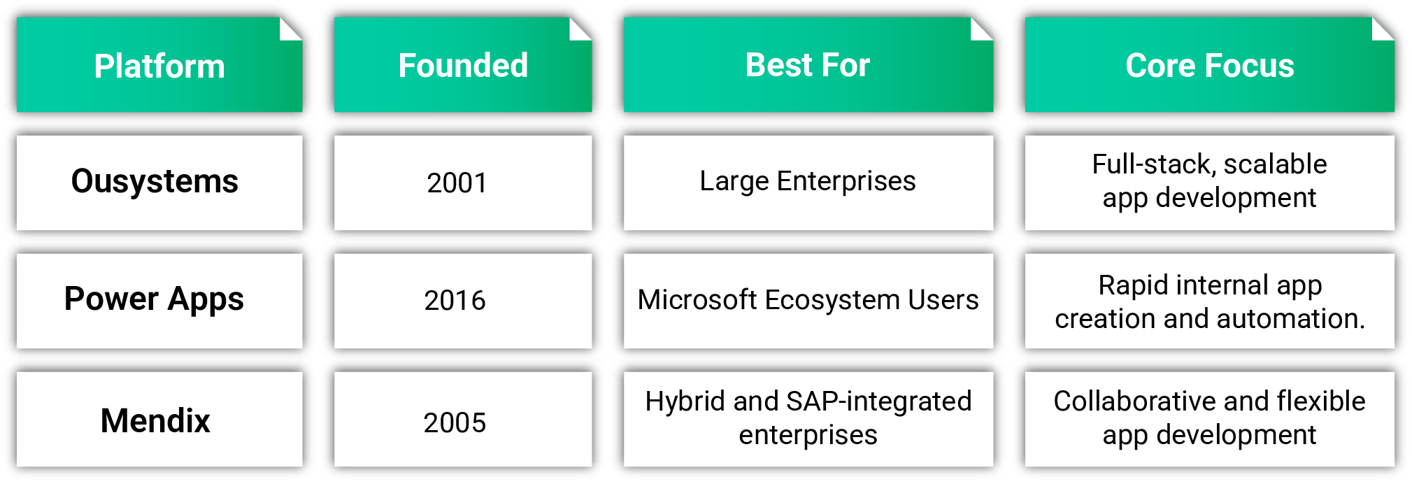 Feature Comparison: OutSystems vs Power Apps vs Mendix.