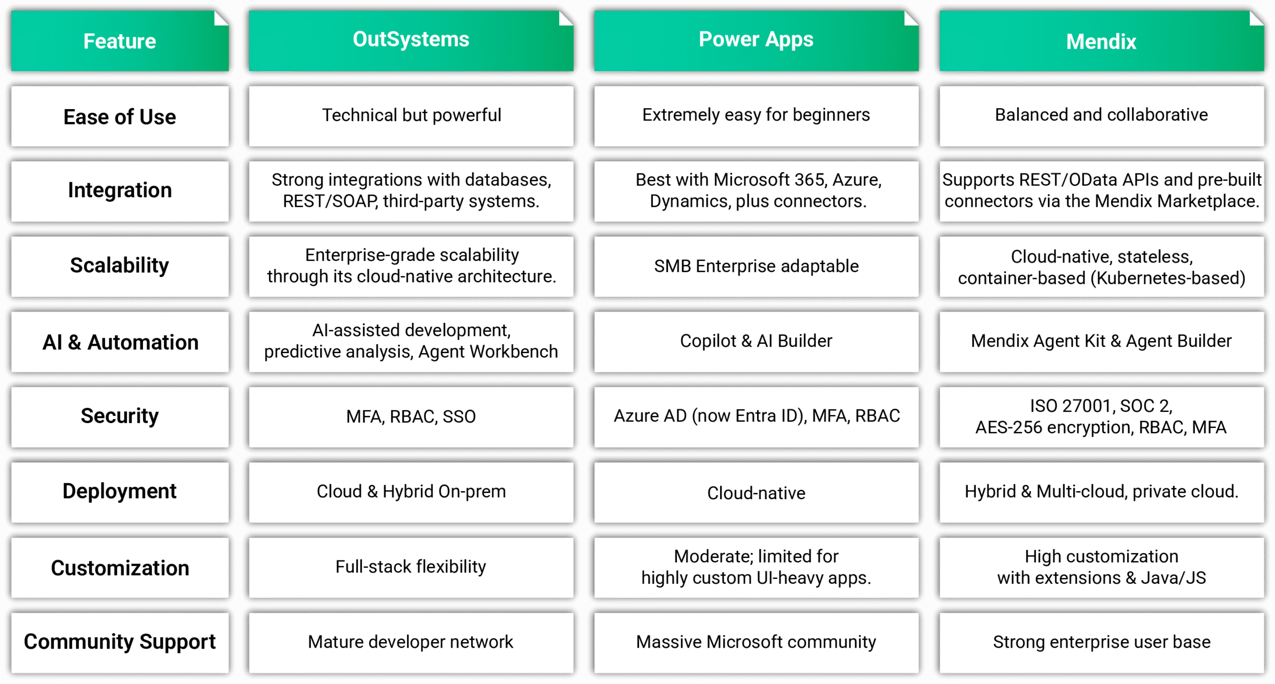 - Feature Comparison: OutSystems vs Power Apps vs Mendix.