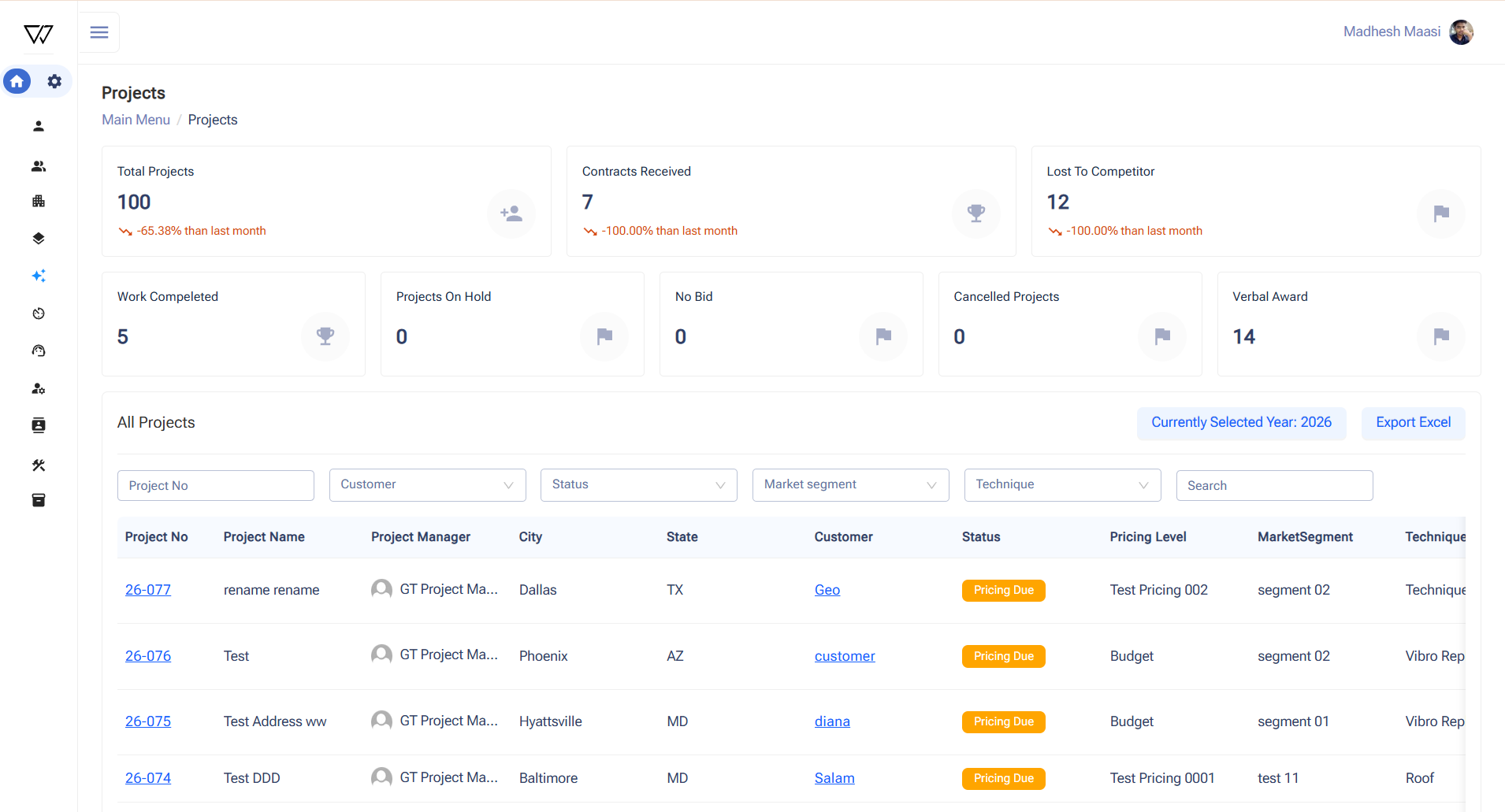 The company managed construction projects, geotechnical construction details entirely through Excel spreadsheets. This approach led to fragmented information, version control issues, and a high risk of data entry errors, making it difficult to track project status in real time. Additionally, there was no centralized system to provide a holistic view of project data across teams and activities